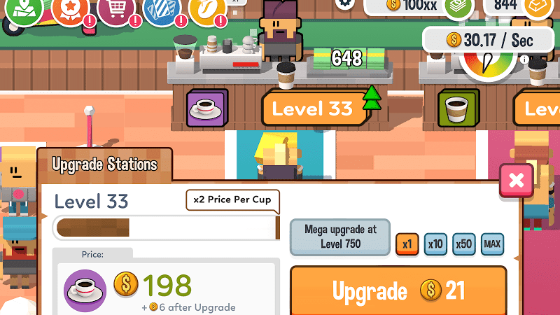 The game鈥檚 visuals are simple but clean, and the idle mechanics make it easy to play in short bursts. There are plenty of upgrades to unlock, and the satisfaction of seeing your coffee empire grow is what drives the game forward. However, like many idle games, the gameplay can feel repetitive over time, especially as you progress further.
