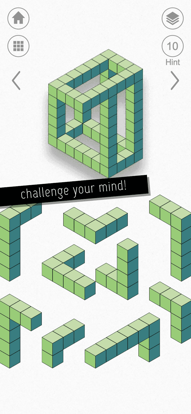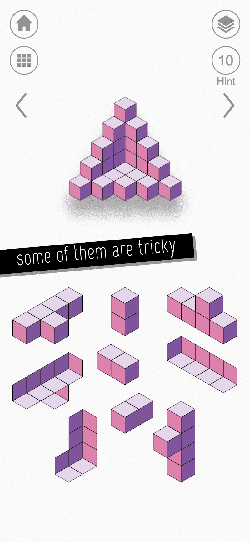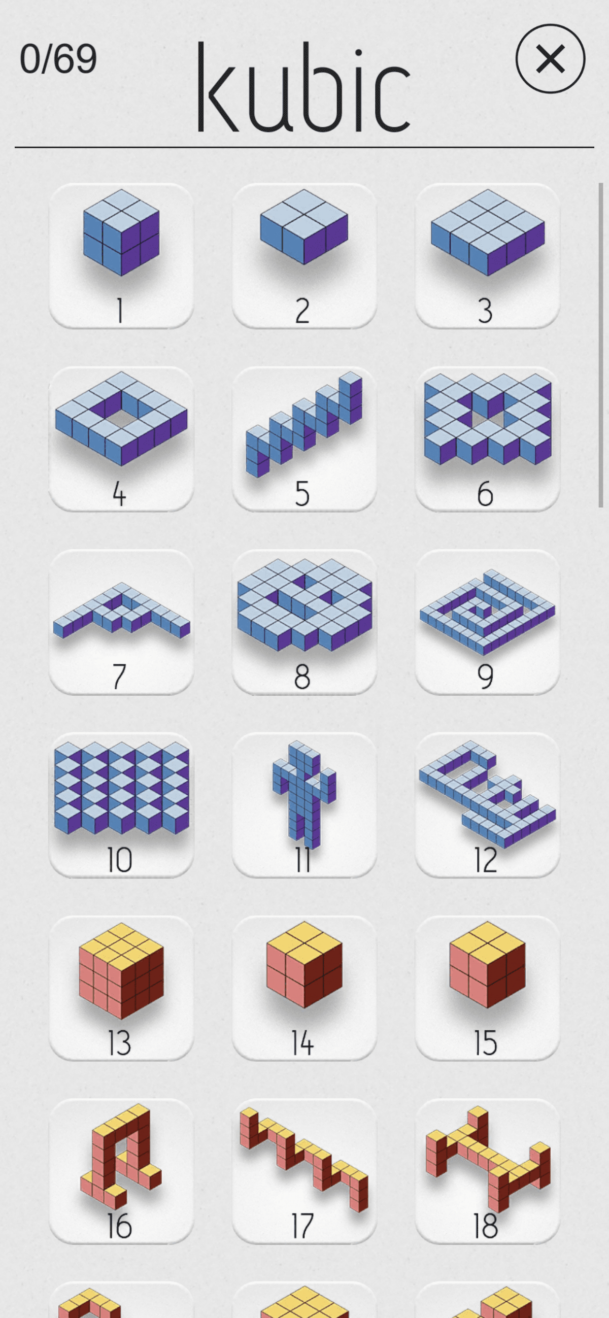 Kubic is a puzzle game that challenges players to arrange blocks to complete a larger picture. The game features a series of puzzles where players must manipulate the blocks in various ways to form a complete image. The levels start easy, but they gradually increase in difficulty, requiring more strategic thinking.