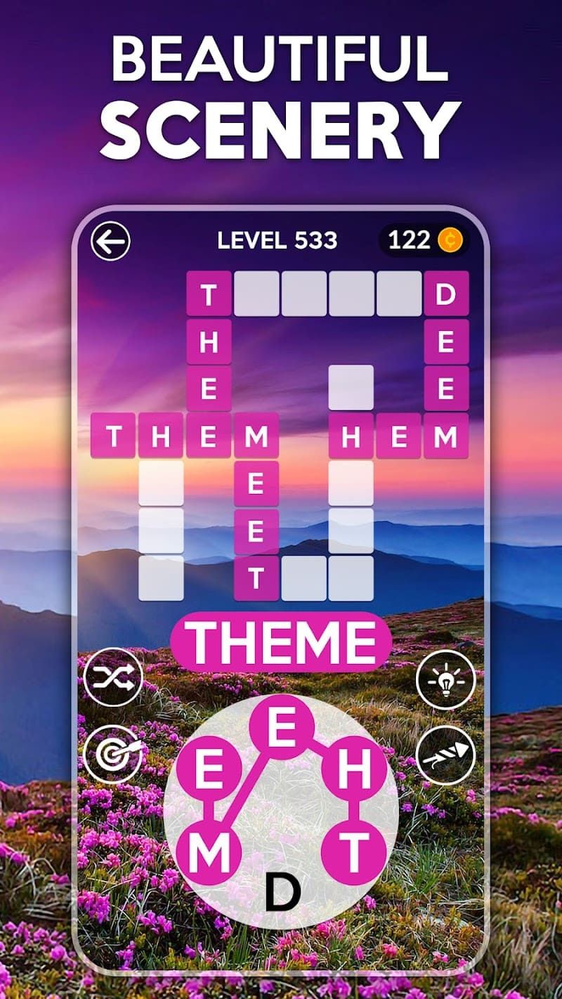 Wordscapes is a relaxing and addictive word puzzle game where players must form words from a set of letters to fill in a crossword-style grid. The game starts simple but gradually increases in difficulty as players encounter more complex grids and a larger pool of letters.